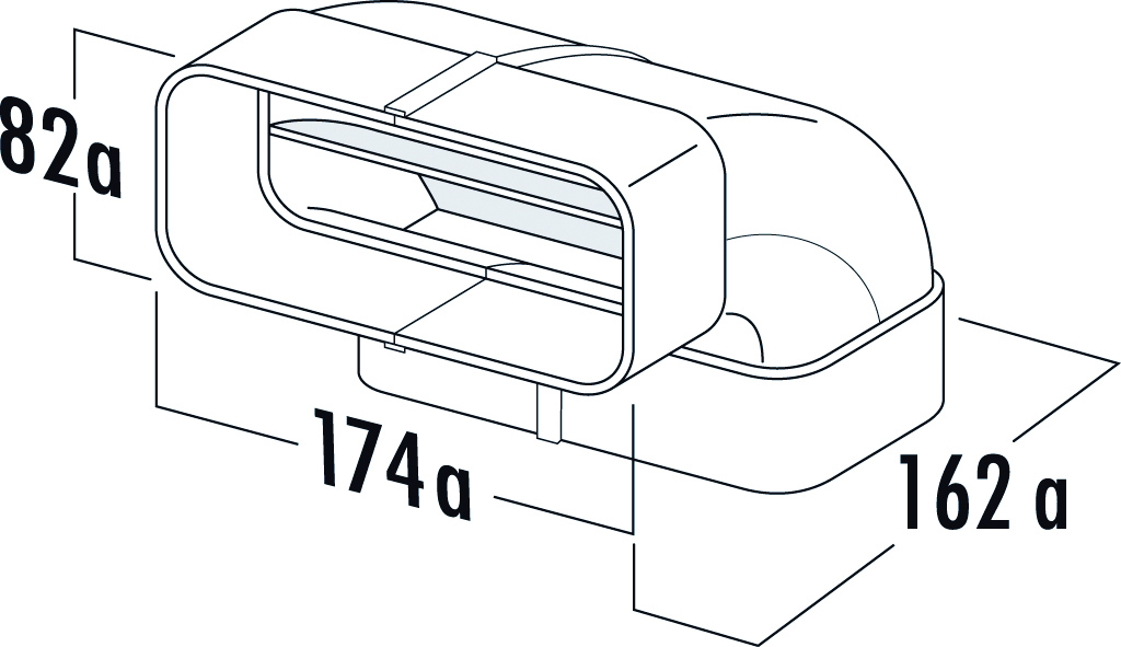 Patentoitu tekniikka markkinoiden edistyksellisimmässä kanavajärjestelmässä. Optimoi ilmavirran ja suojaa moottoriyksikköä. Vähentää melua ja säästää tilaa kaappien sisä- ja yläpuolella.