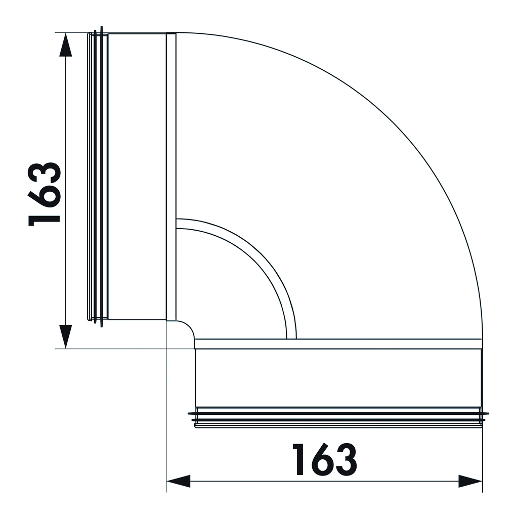 90° Kulma Ø150 teräs - Tuote-esite