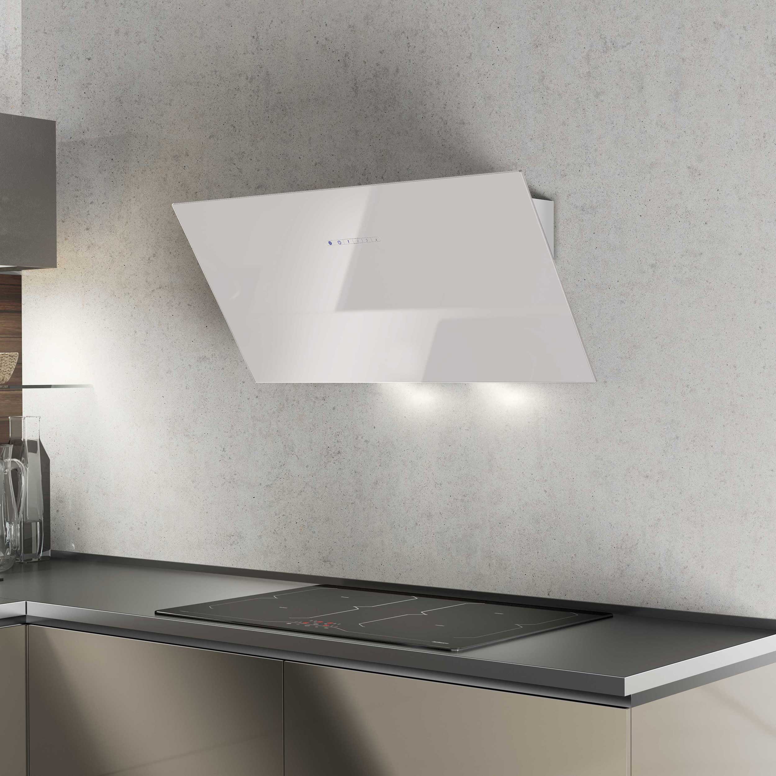 Seinään asennettava liesikupu, Viistomallinen, Sisäisellä moottorilla - Valkoinen/ optic white -lasi - 800 mm - A