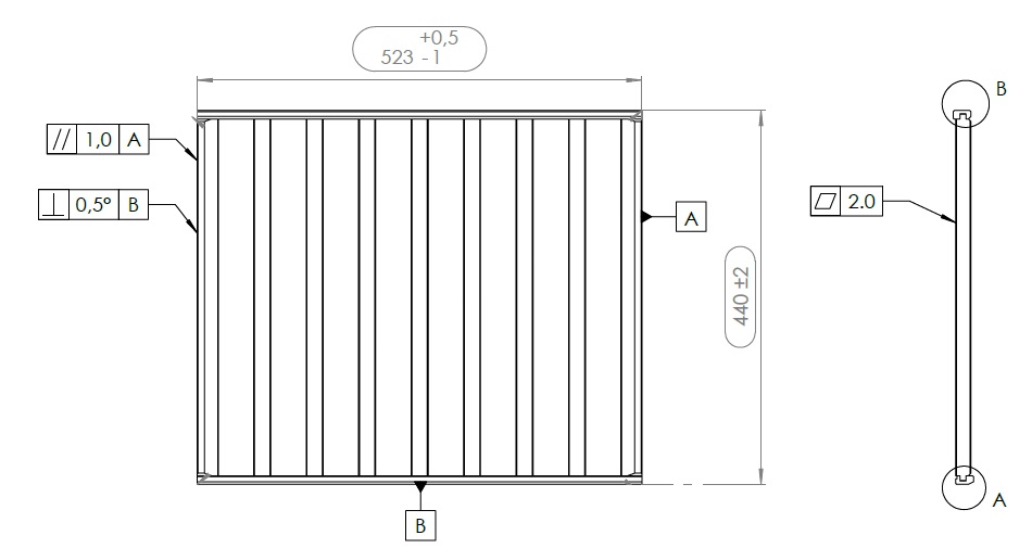 - Tuote (LxSxK): 523 x 440 x 2 mm