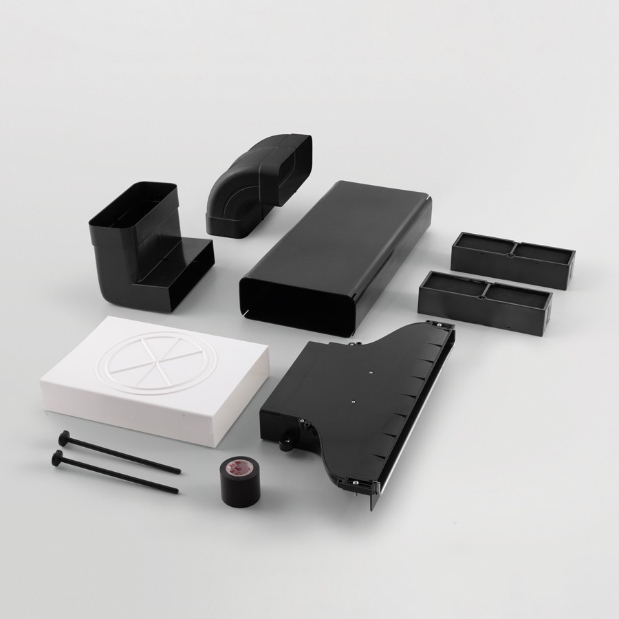 Kokonainen putkisarja. Keraamiset kiertoilmasuodattimet, sokkelin poistosuutin ja teippi, jolla voidaan tiivistää putkien liitännät. Ilma johdetaan putkiston läpi, joka voi kulkea sokkeleissa, jonka korkeus on vähintään 60 mm