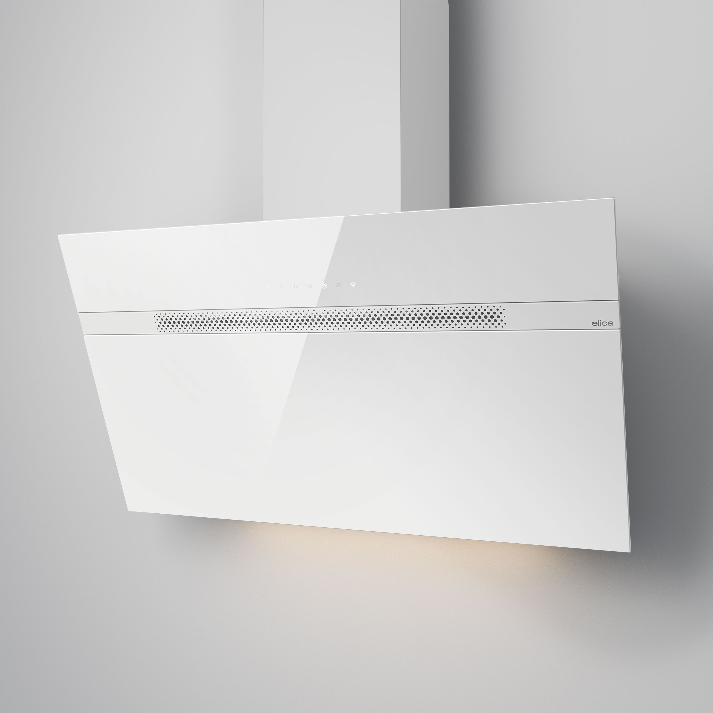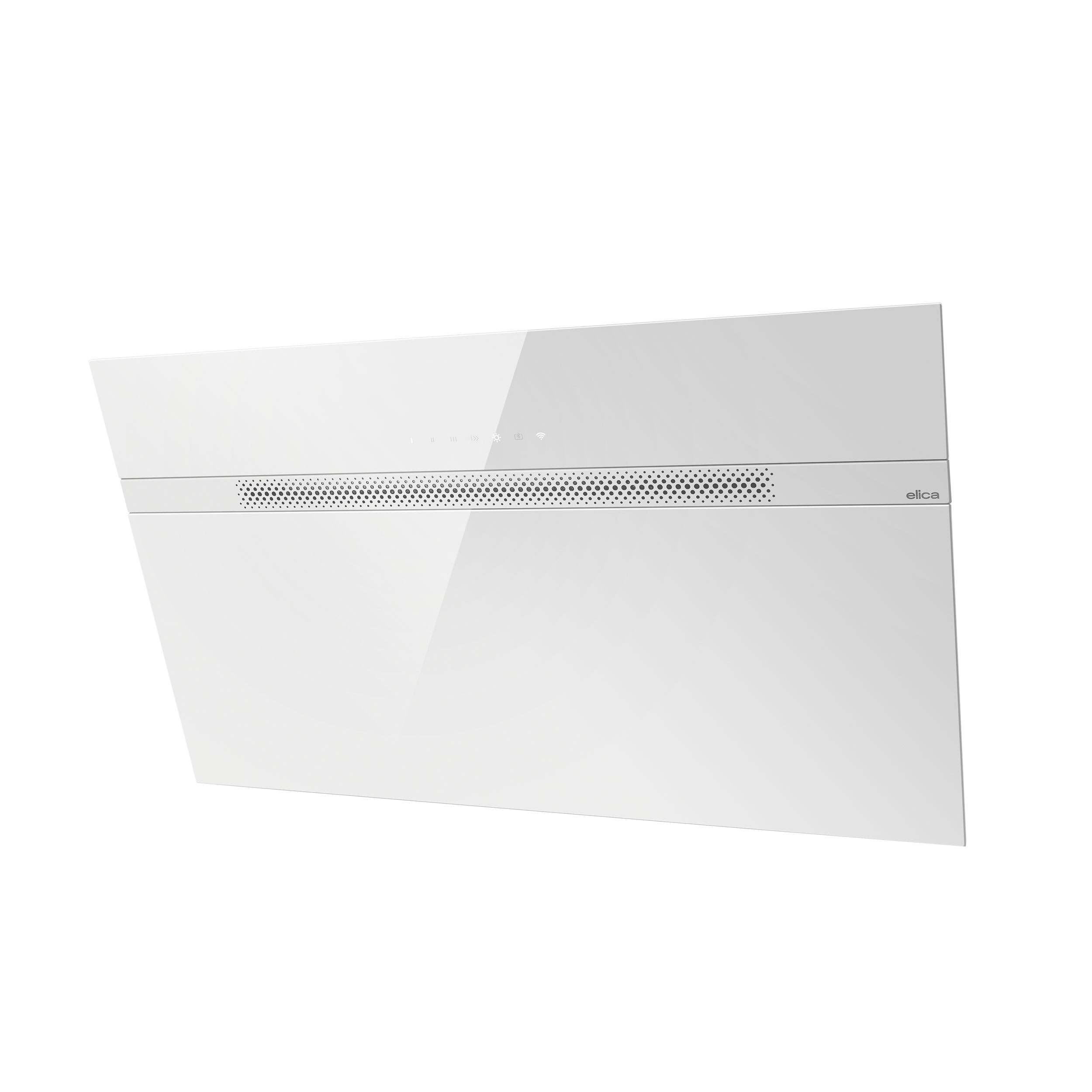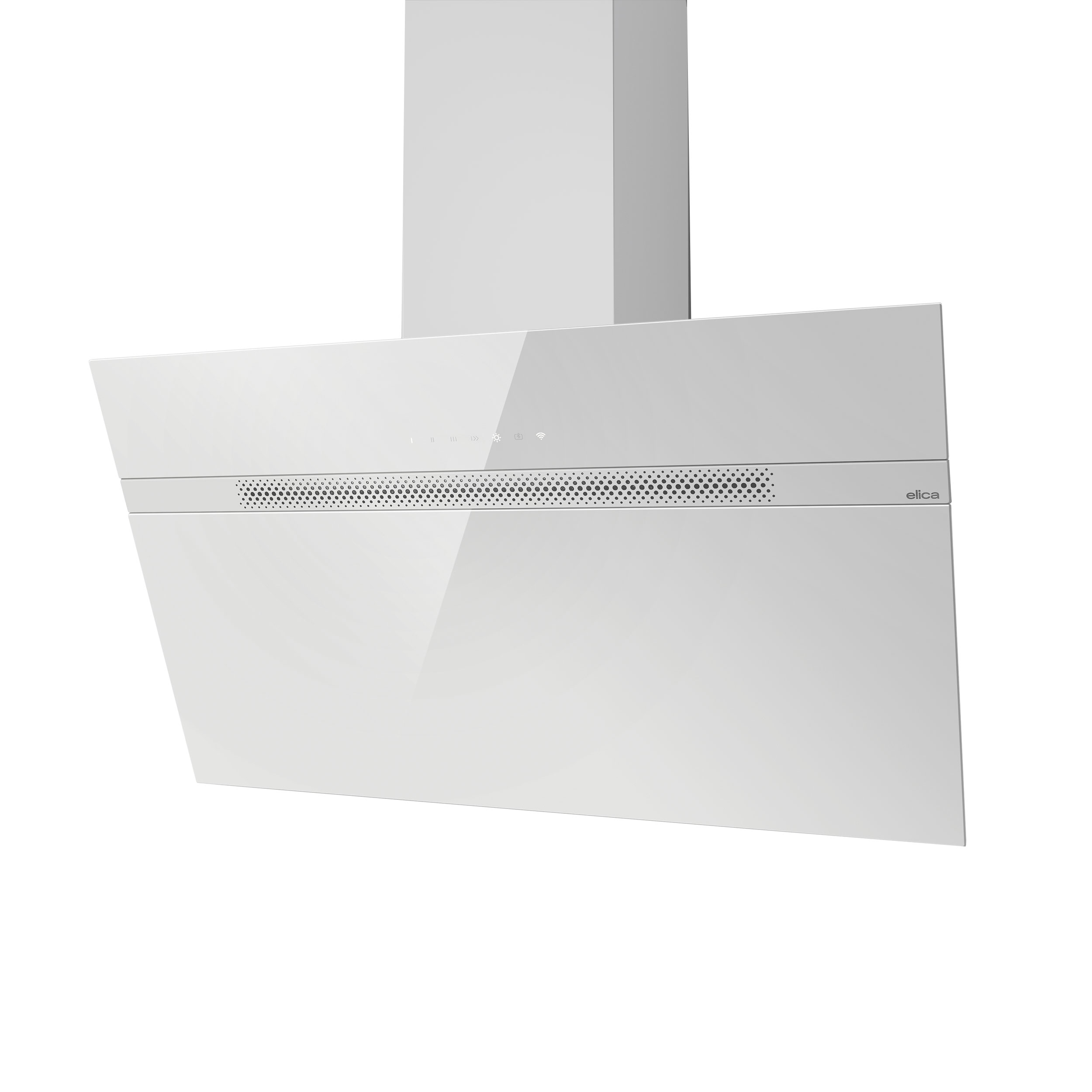 Seinälle asennettava viisto liesituuletin - Sisäänrakennetulla moottorilla - Valkoinen - Leveys 800 mm - Energialuokka A++
