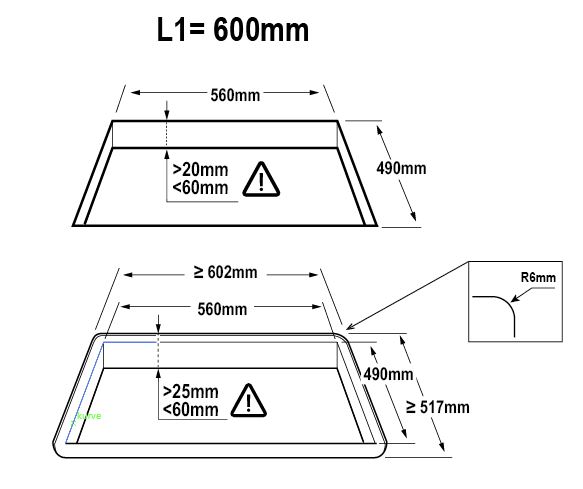 - Tuote (LxSxK) 600 x 515 x 250 mm