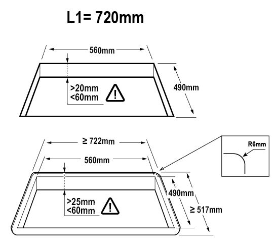 - Asennusaukko (LxSxK): 560 x 490 mm