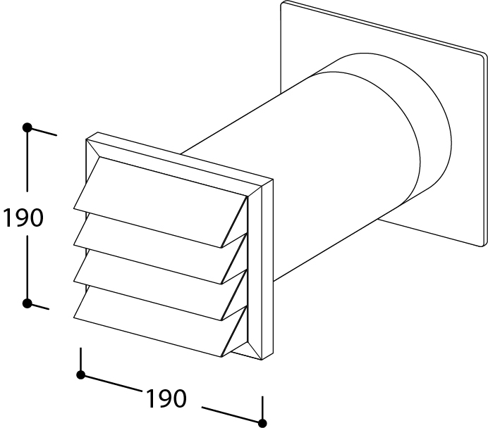 Seinäläpivienti sis. pystysuoran kylmäsuojaventtiilin, 90x220 mm-Ø150