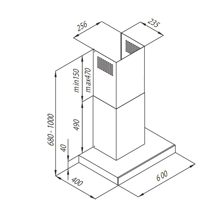 - Tuote (LxSxK) 600 x 400 x 680 - 1000 mm