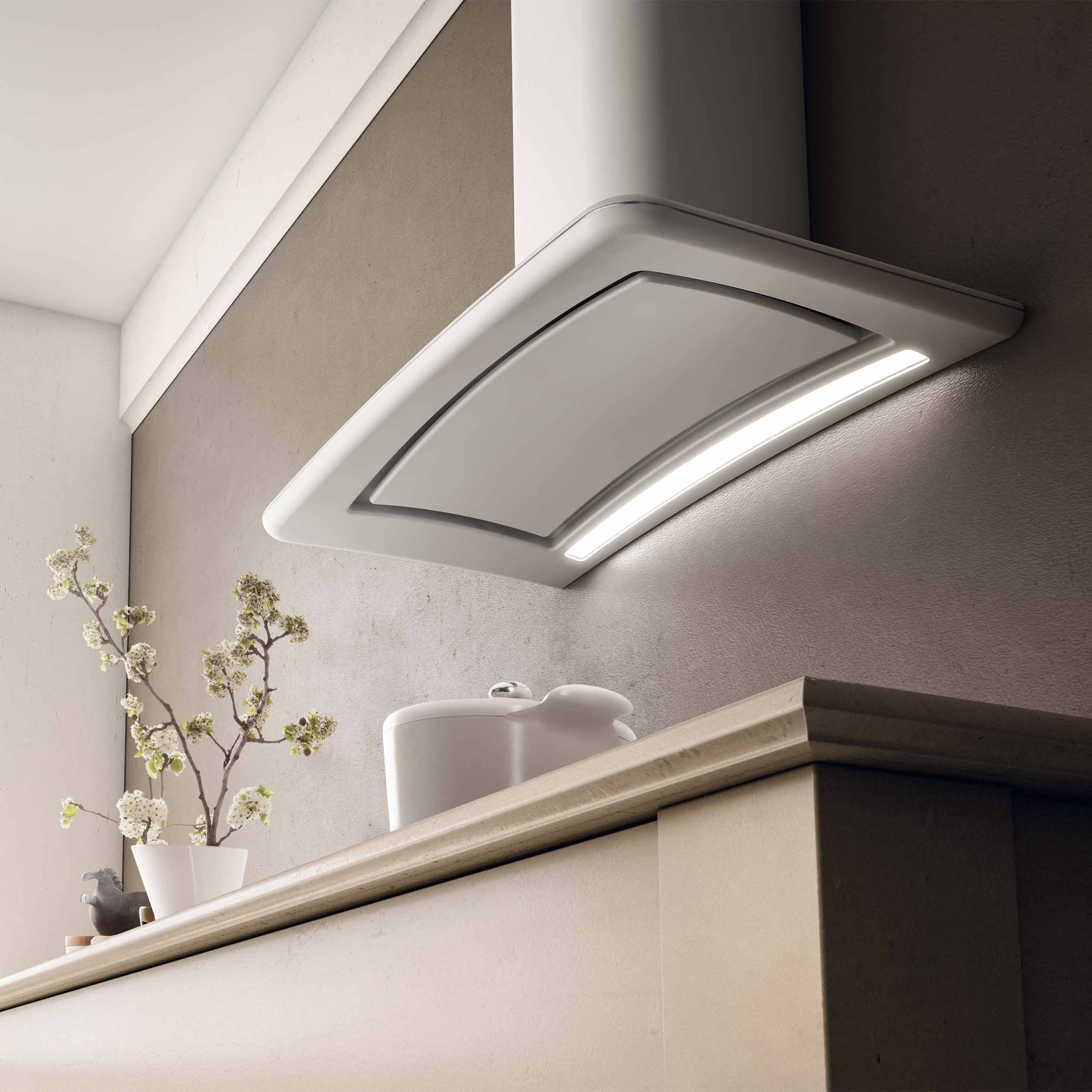 Seinään asennettava liesikupu, Sisäisellä moottorilla - Lasikuitu, mattavalkoinen - 850 mm - A