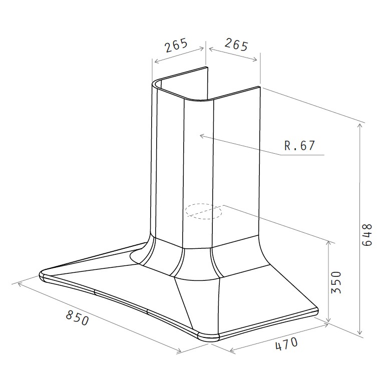 Seinään asennettava liesikupu, Sisäisellä moottorilla - Lasikuitu, kupari - 850 mm - A