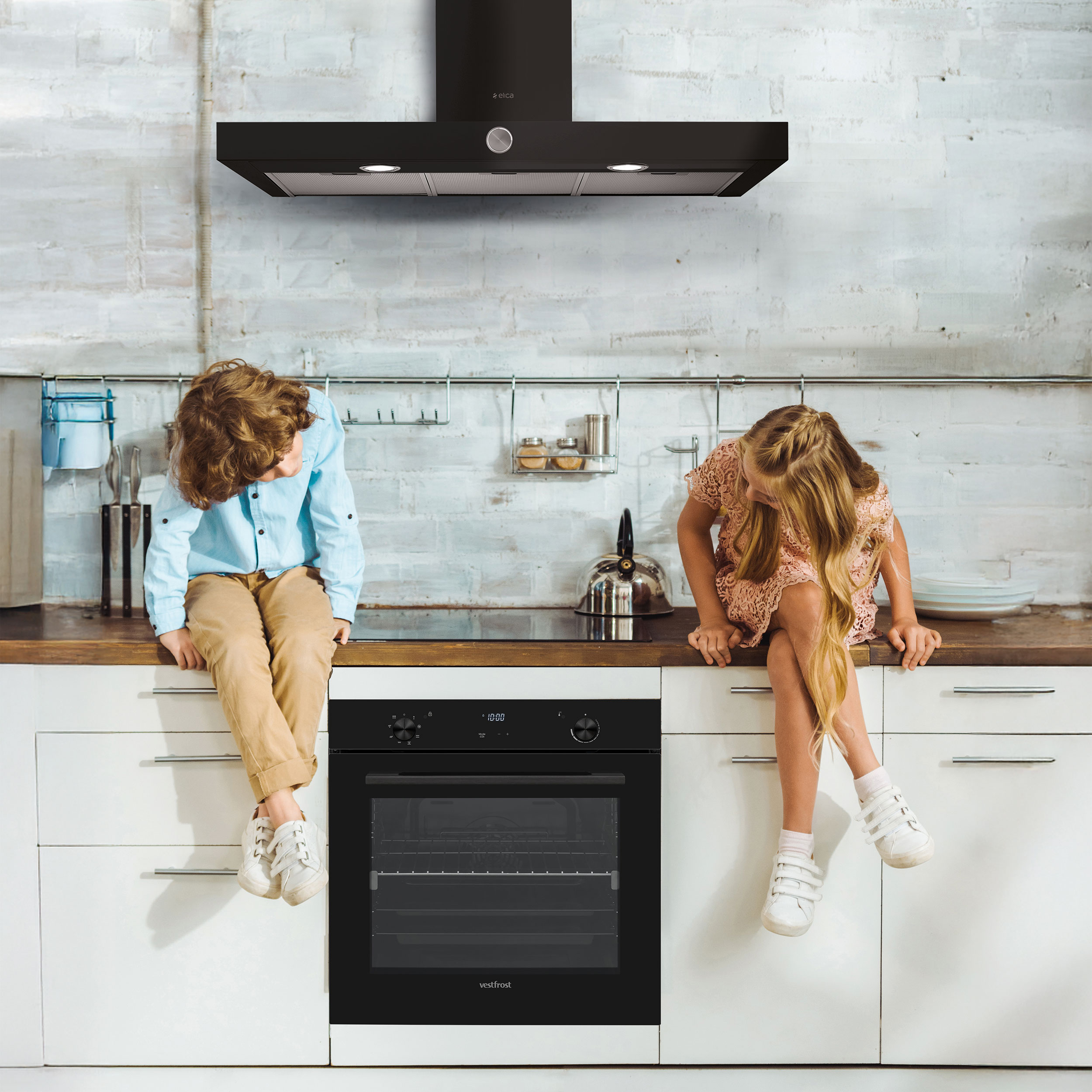 - Pohjoismainen minimalistinen muotoilu valkoisella näyttövalolla ja black steel -kahvalla.