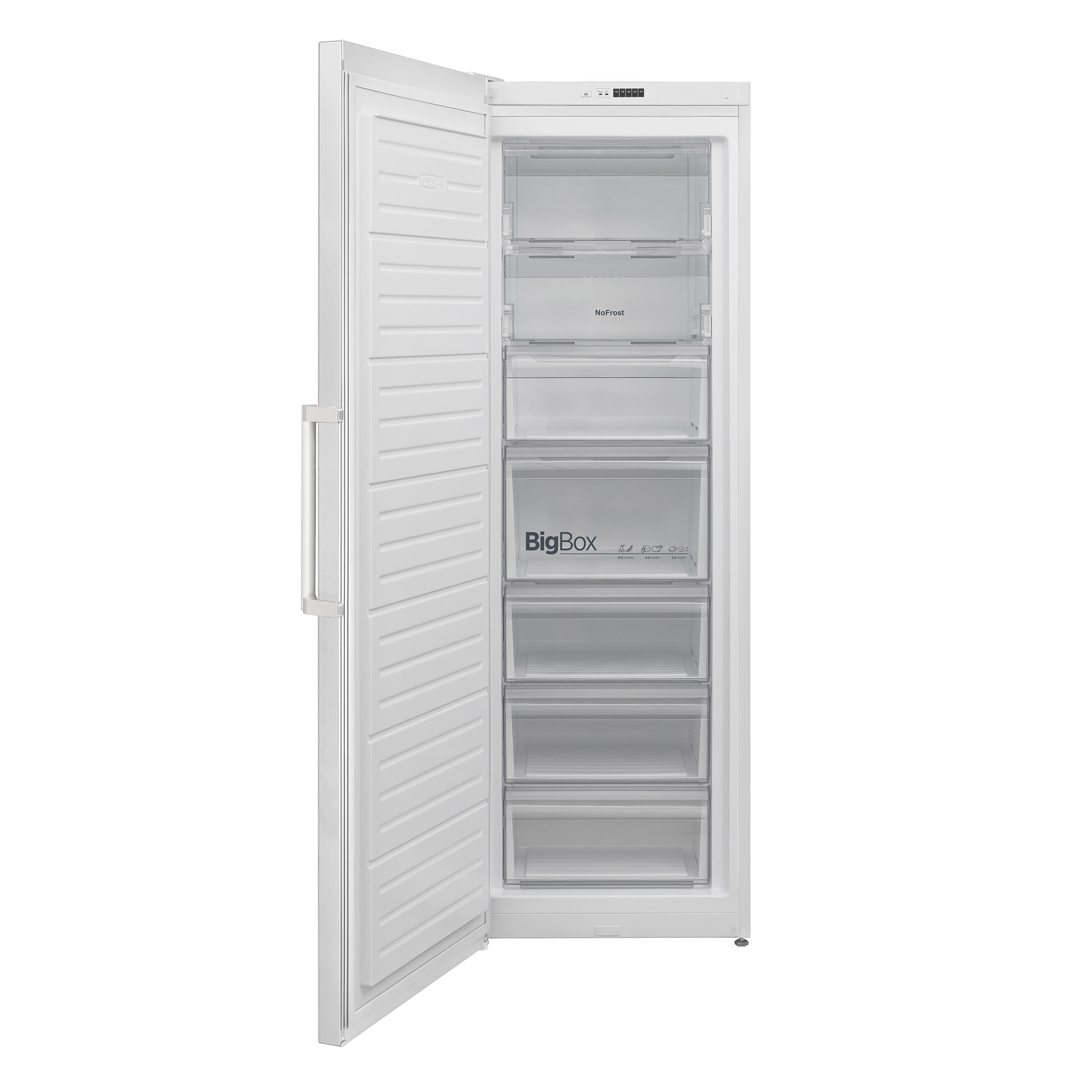 Tämä 186 cm korkea pakastin sopii nykyaikaisiin koteihin. NoFrost estää jään muodostumisen ja Super-freeze nopeuttaa pakastamista. Easy-open-kahva ja tilavat laatikot, mukaan lukien BigBox.