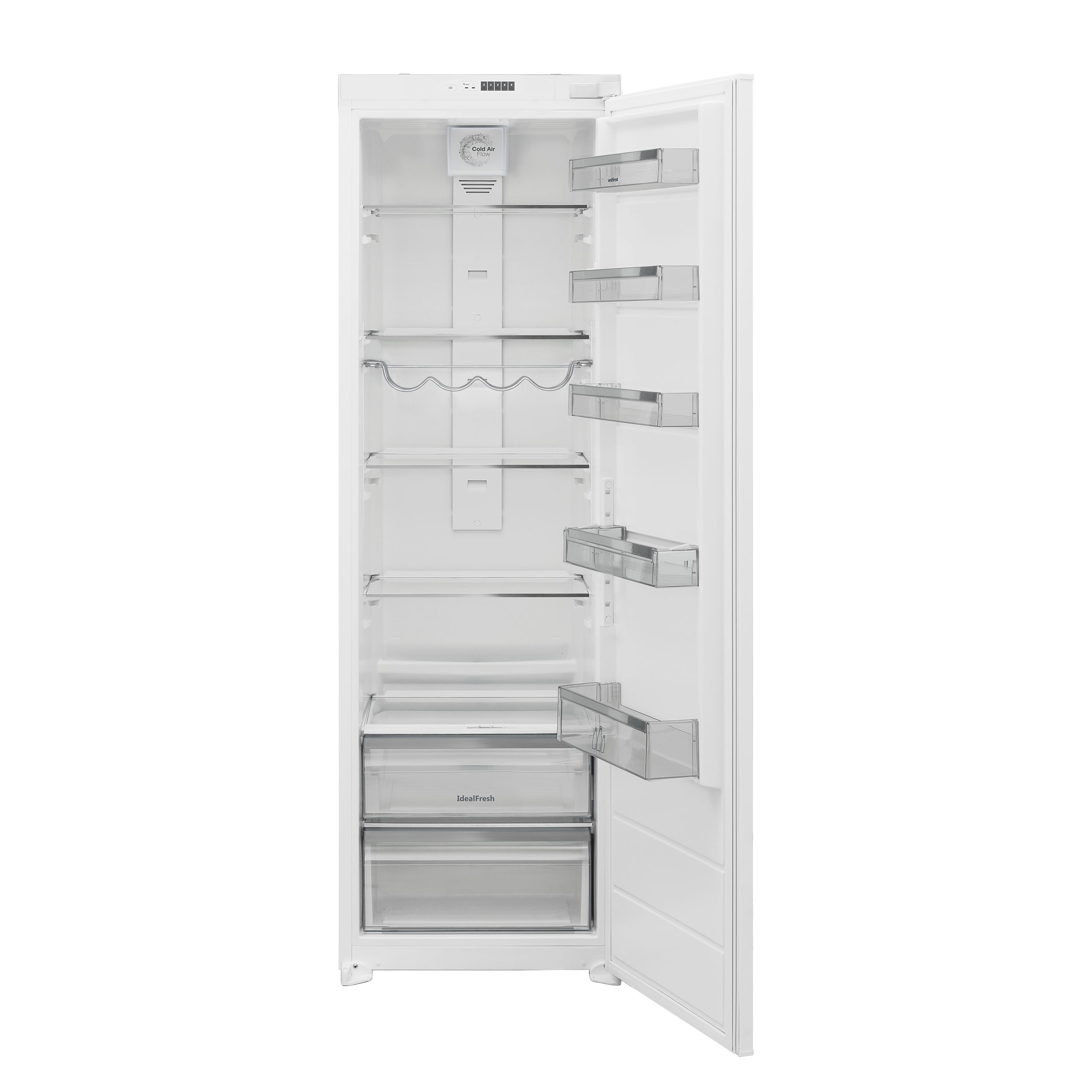 - Integroitava jääkaappi LED-valaistuksella ja Cold Air Flow -järjestelmällä tasaisen jäähdytyksen varmistamiseksi.