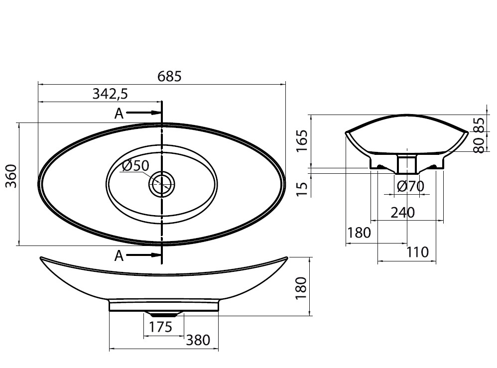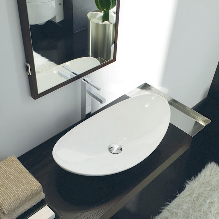 Pesuallas valkoisesta posliinista, asennetaan pöydälle - Valkoinen posliini