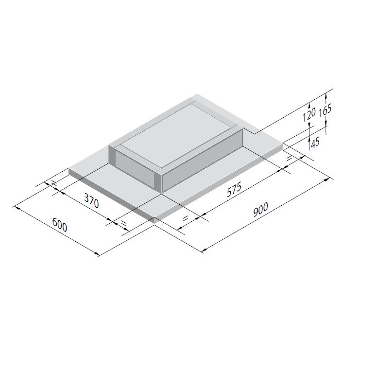 - Tuote (LxSxK) 900 x 600 x 165 mm
