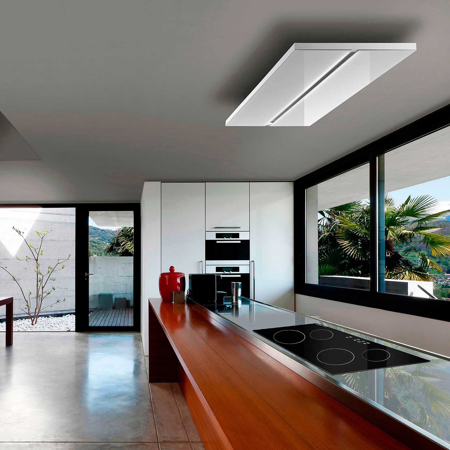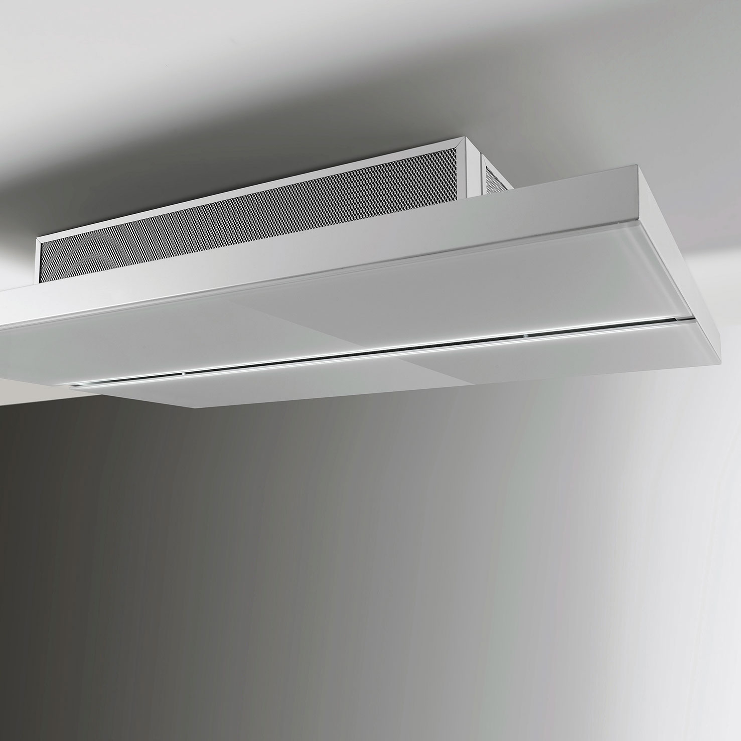 Kattoon asennettava liesituuletin, Sisäisellä moottorilla - Valkoinen / Crystal white -lasi - Sis. kaukosäätimen - 900 mm