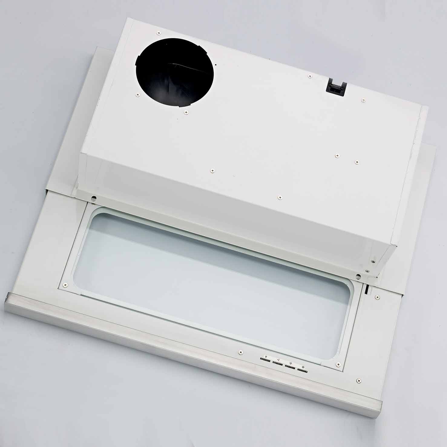 Ulosvedettävä liesituuletin, Sisäisellä moottorilla - Valkoinen / valkoinen / lasi - 600 mm