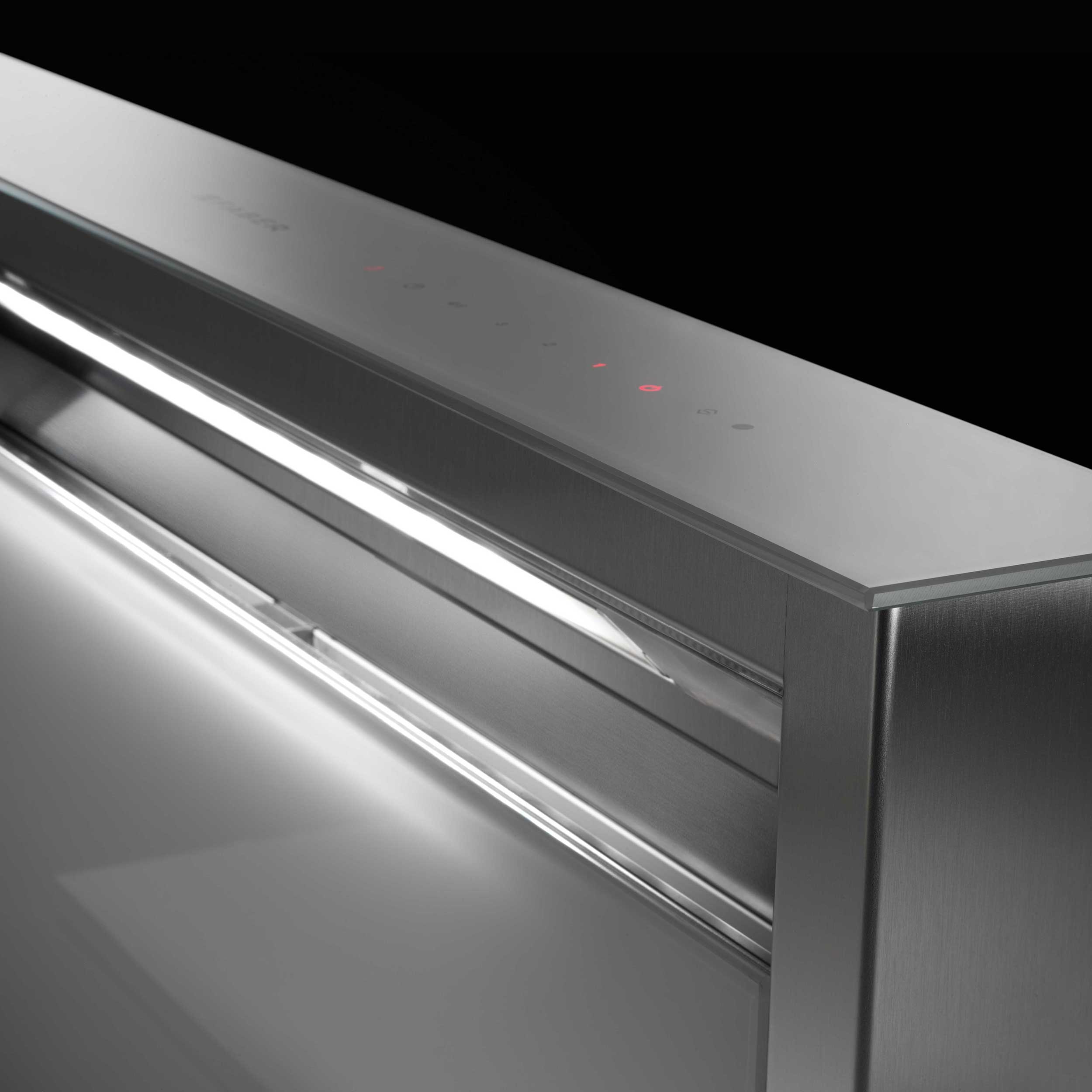 Tasoon asennettava liesituuletin, Sisäänrakennetulla siirrettävällä moottorilla - Ruostumaton teräs / crystal white -lasi - 880 mm - A