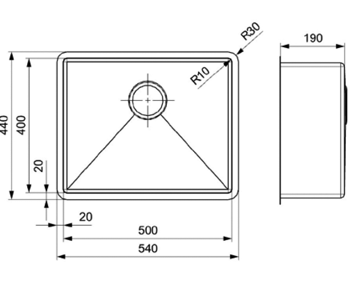 Teräsallas. Yksi allas ilman takareunaa. Altakiinnitettävä tai huullosasennus. - Ruostumaton teräs