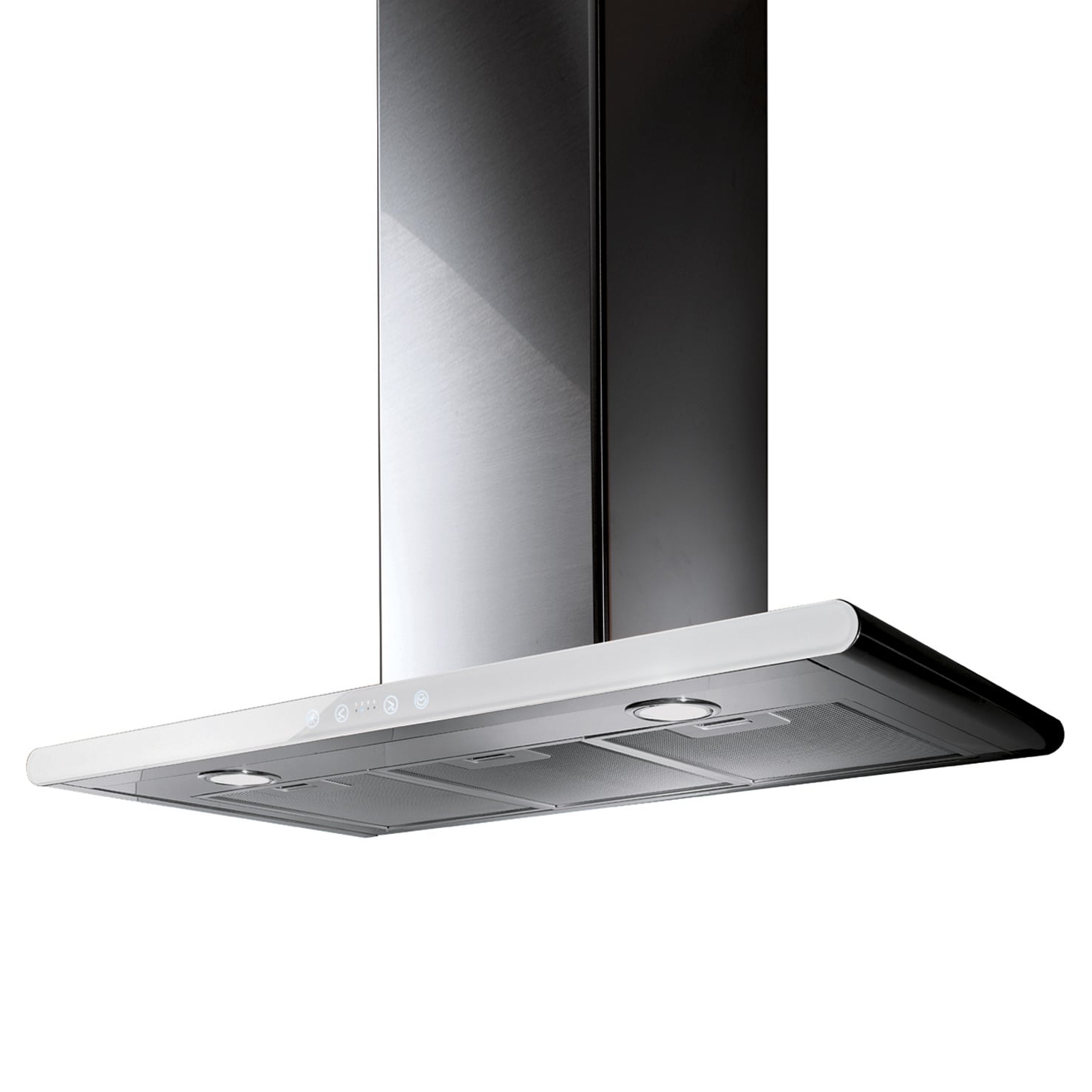 Seinään asennettava liesikupu, Sisäisellä moottorilla - Ruostumaton teräs / crystal white -lasi - 800 mm