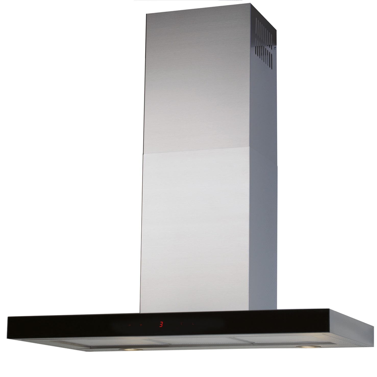 Seinään asennettava liesikupu, Sisäisellä moottorilla - Ruostumaton teräs / musta lasi - 900 mm