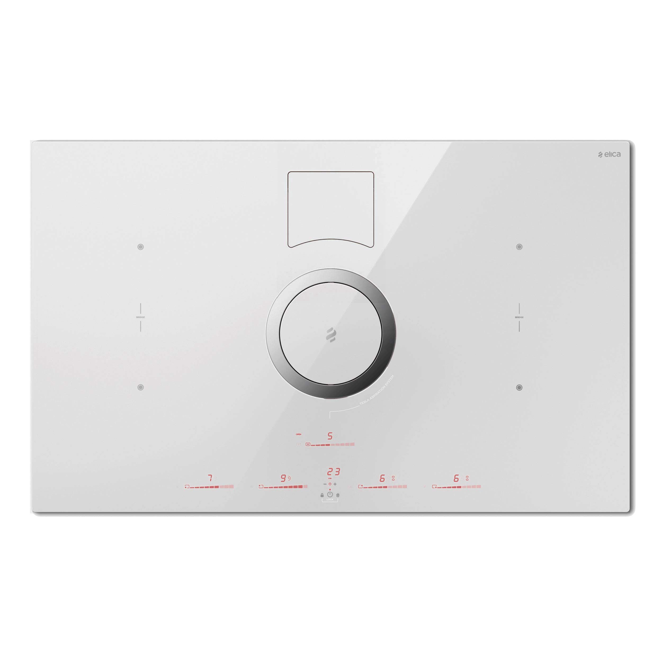 Kogeplade med integreret emhætte. Med intern motor - Lige kant, hvidt glas - 830 mm - Model for recirkulation.