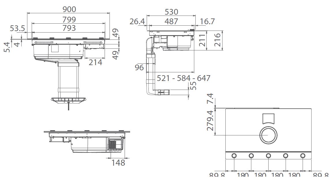 - Tuote (LxSxK) 900 x 530 x 211 mm