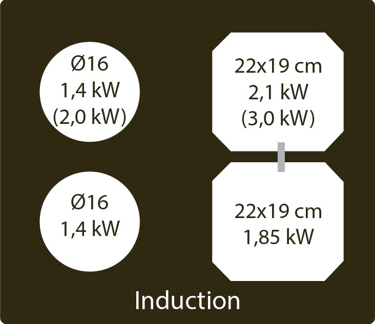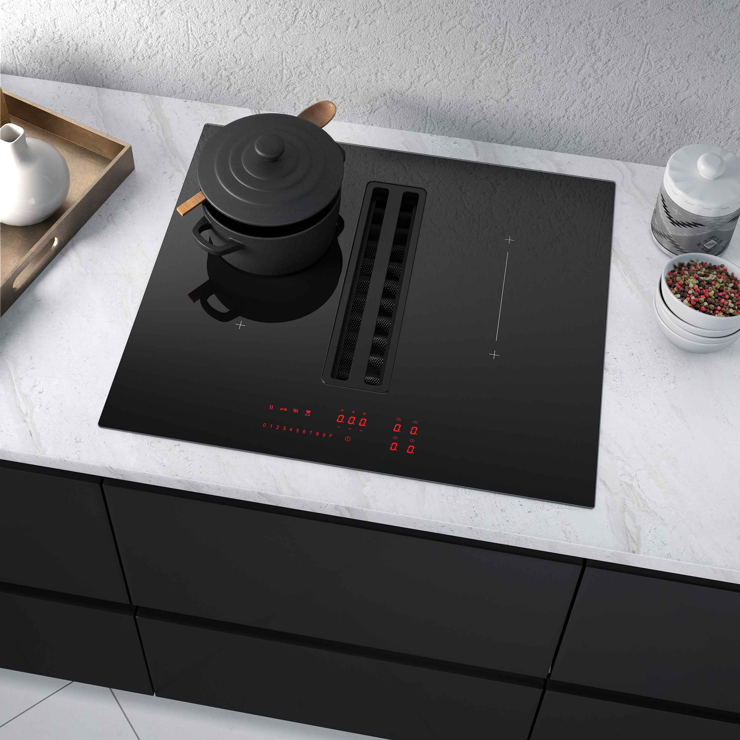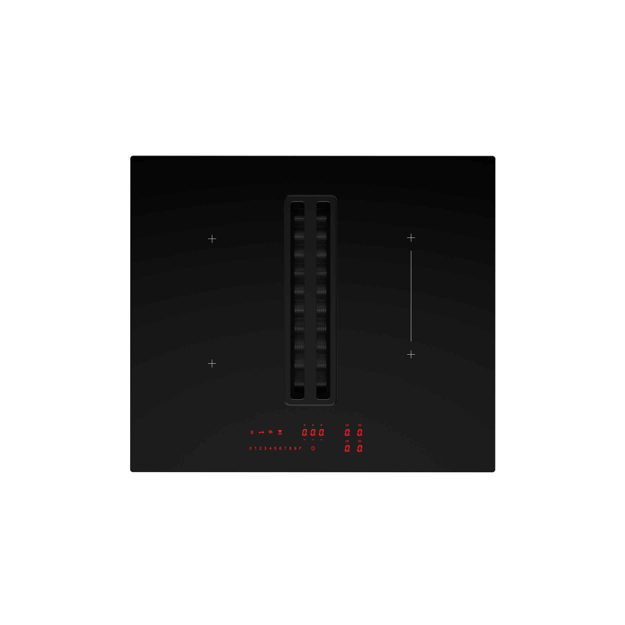 Induktiotaso liesituulettimella. Sisäisellä moottorilla - Kokomusta lasi - 600 mm - A