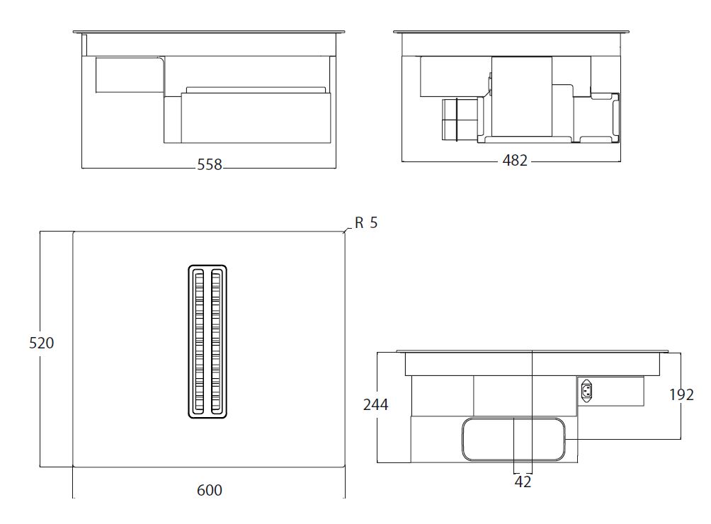 - Tuote (LxSxK) 600 x 520 x 244 mm