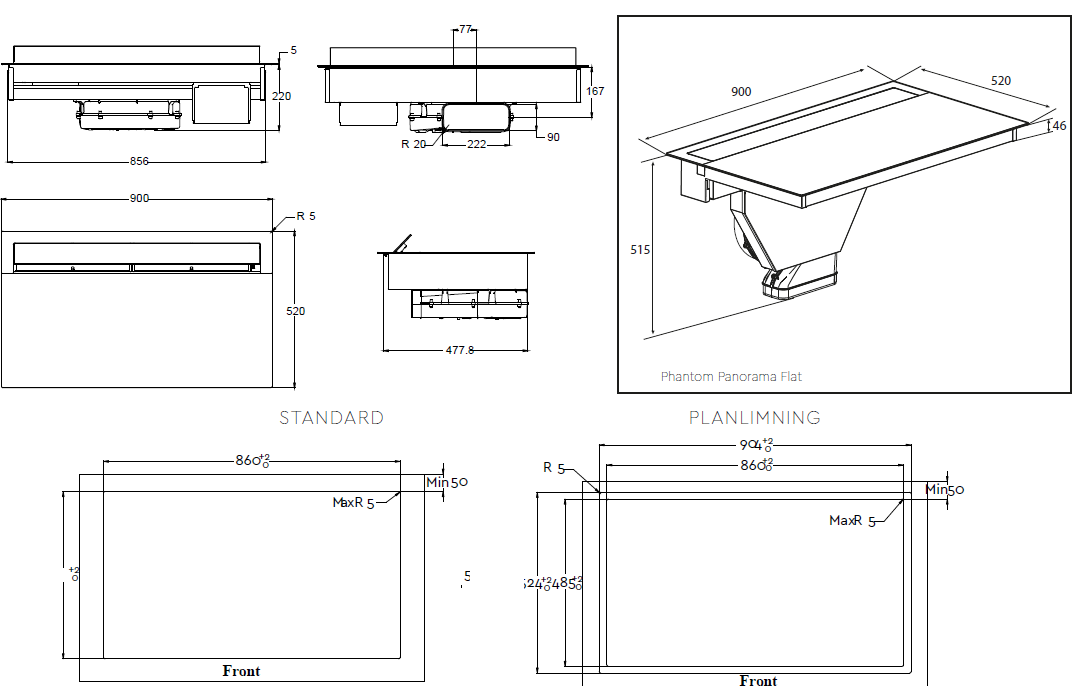 Phantom Panorama Flat 90 N A:ssa on pystysuora moottori ja matala 48 mm asennuskorkeus, mikä jättää tilaa laatikoille alle. 6,5 m/s ilmavirtaus ja erittäin hiljainen toiminta 61 dB(A). Energialuokka A++.