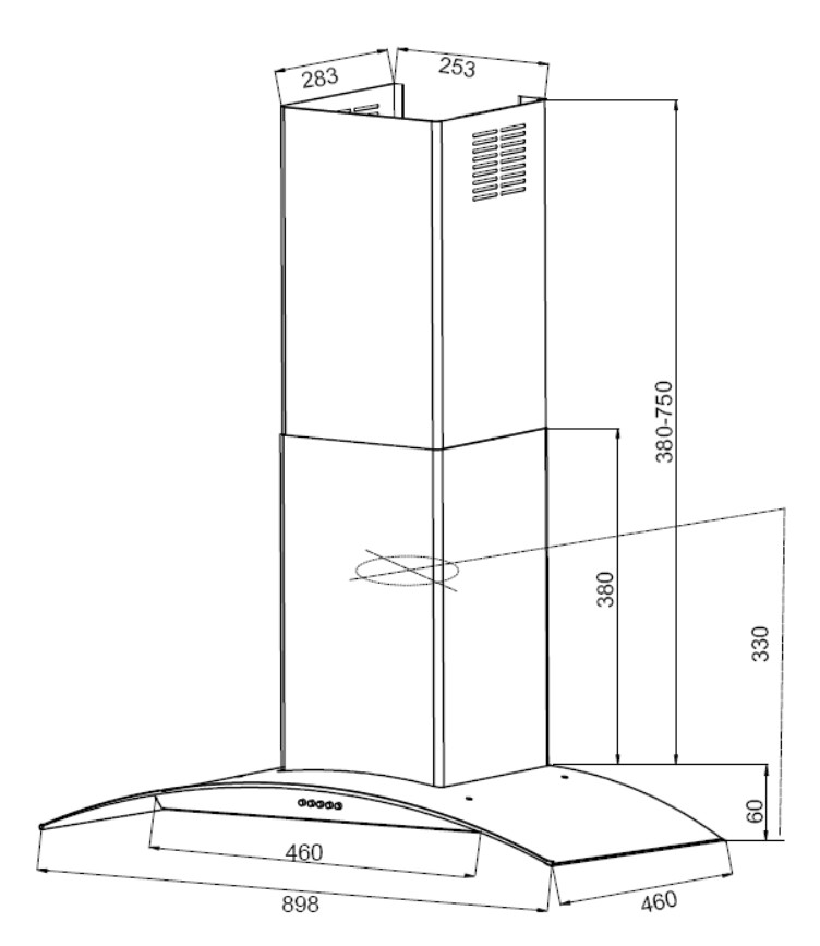 Seinään asennettava liesikupu, Sisäisellä moottorilla - Ruostumaton teräs/ lasi - 898 mm - A