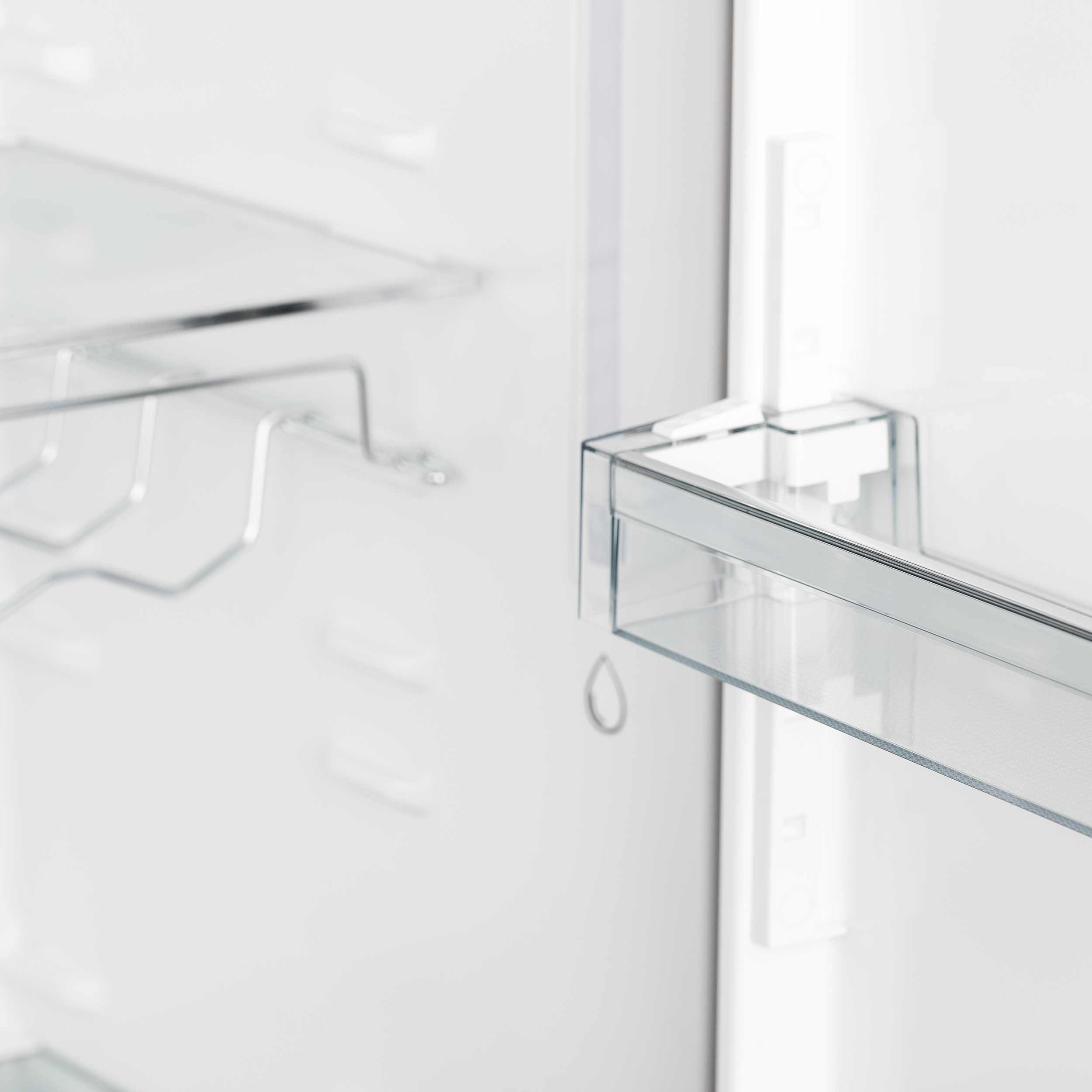 Køleskabet skal ikke længere kobles fra for at afrimes. Det klares istedet af et automatisk afrimningssystem ved en konstant temperatur i køleskabet. Dette vil ikke påvirke madens friskhed. Kondensvandet ledes til bagsiden af køleskabet, hvor det fordamper.