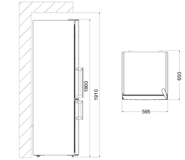 - Produkt (BxDxH) 595 x 650 x 1860 mm