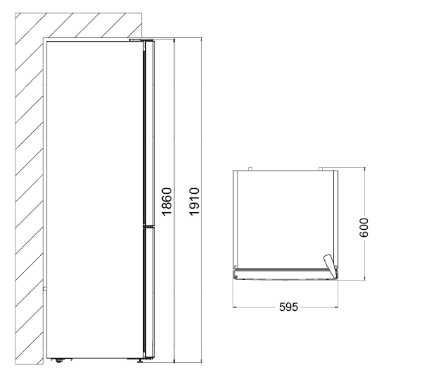 - Tuote (LxSxK): 595 x 600 x 1860 mm