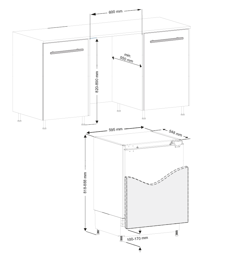 - Tuote (LxSxK) 595 x 548 x 818 - 882 mm