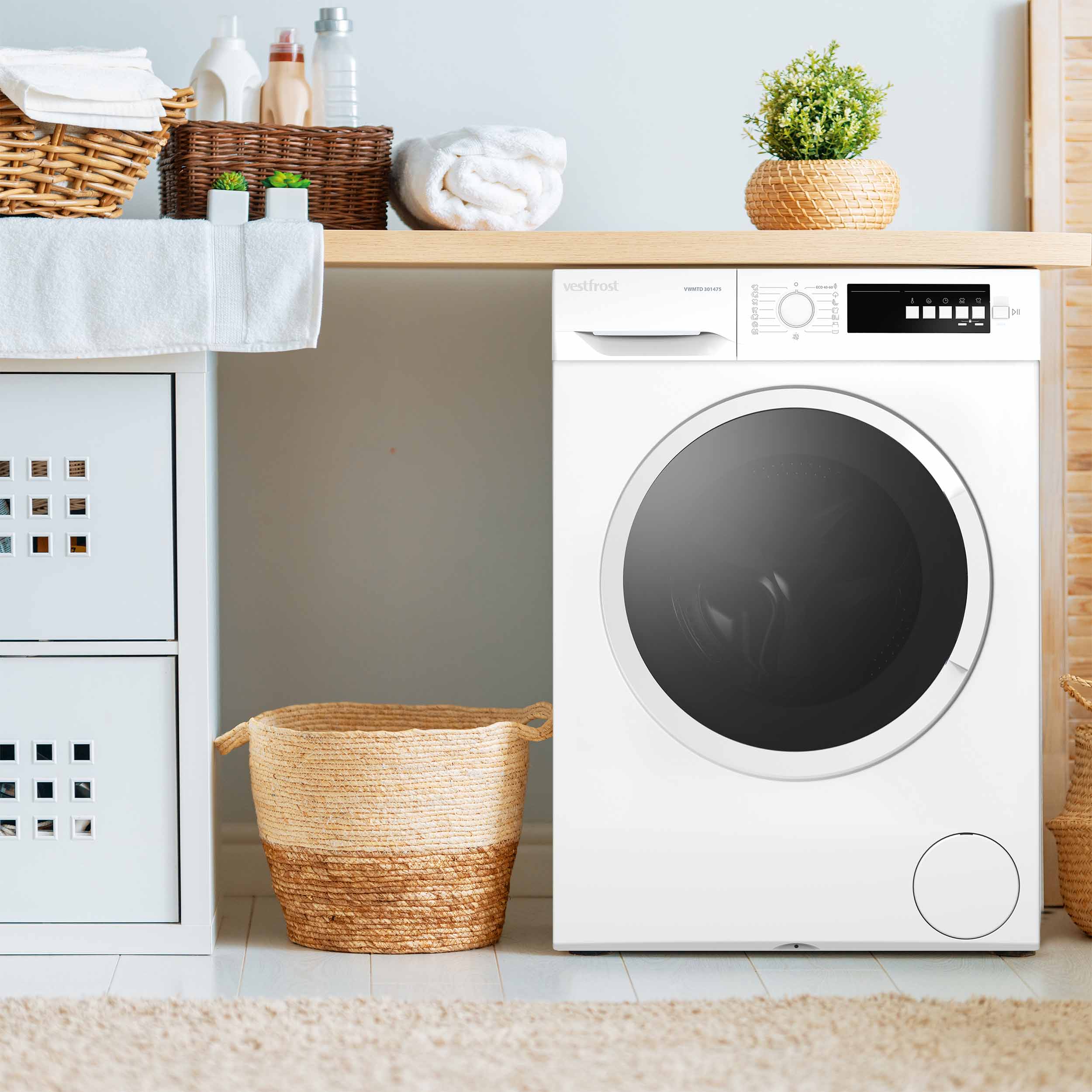 - Vapaasti sijoitettava pyykinpesukone/ Kondensoiva kuivausrumpu. 11/2 pesuohjelmaa. Kapasiteetti: 7/5 kg. 1400 k/min