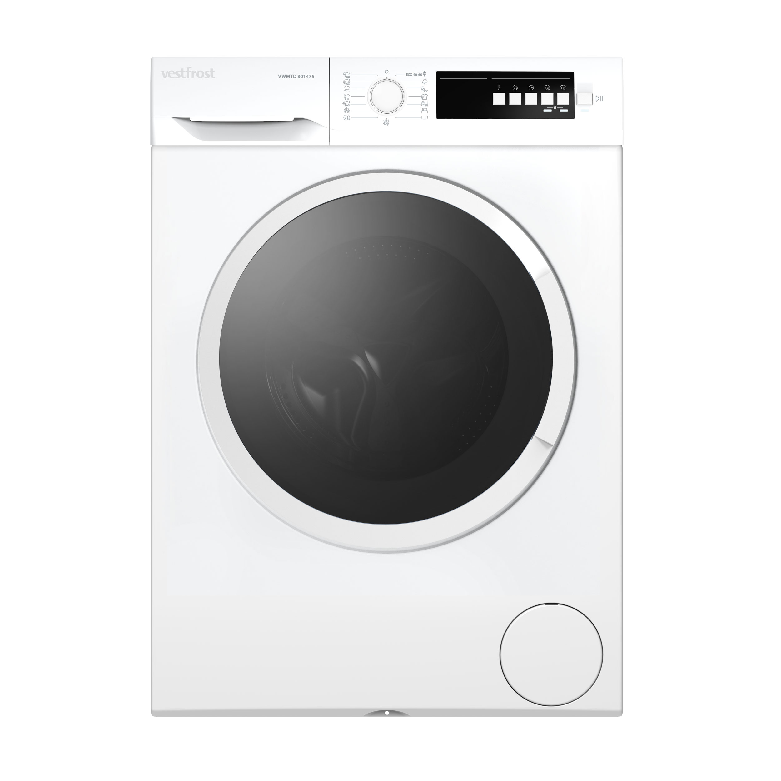 - Puuvillapesu/kuivaus (kylmä lämpötila - 90°C + 3 kuivausastetta & -aikaa)